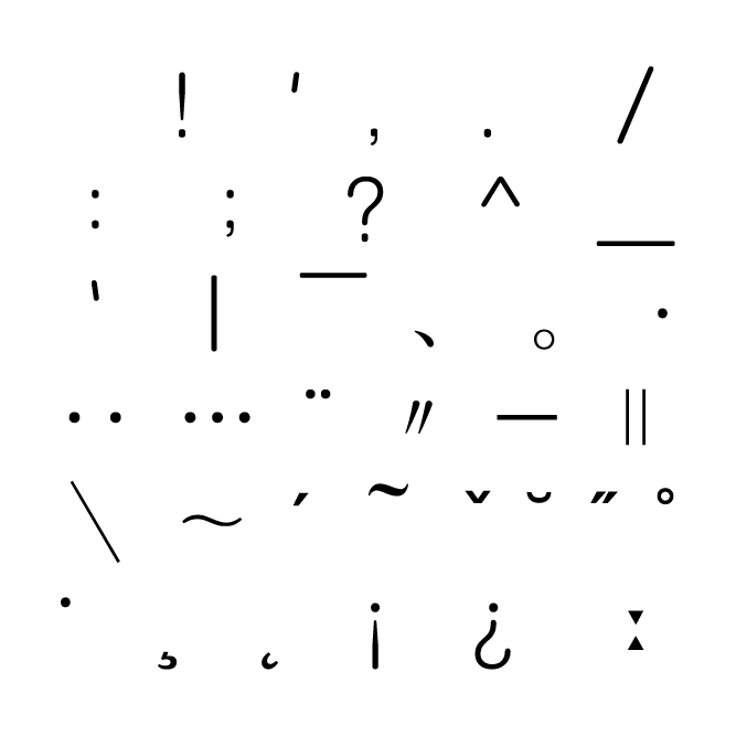 ! ' , . / : ; ? ^ _ ` |  ̄ 、 。 · ‥ … ¨ 〃 ― ∥ \ ∼ ´ ~ ˇ ˘ ˝ ˚ ˙ ¸ ˛ ¡ ¿ ː