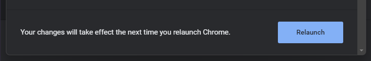 After selecting the desired settings, the 'Relaunch' button will appear at the bottom. When you click it, the entire browser turns off and on, and you can see that the options of the selected dark mode setting are applied.