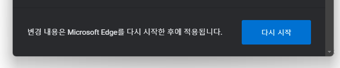 원하는 설정을 선택했다면 하단에 '다시시작' 버튼이 나타납니다. 클릭하면 브라우저 전체가 꺼졌다가 켜지면서 선택한 다크모드 설정의 옵션이 적용된 것을 확인할 수 있습니다.